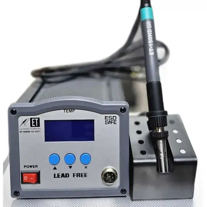 ESD Soldering station with a 150 W heating power. Designed for professional soldering electronic components using lead-free solders.